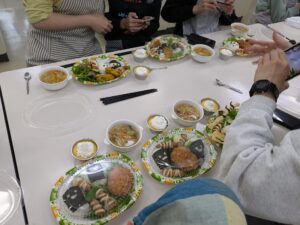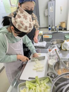 【R6.10.20(日)】親子料理教室 in 西部公民館 2025-12-19 12:54 今月はハロウィンということで、かぼちゃプリンやお化けおにぎり、スープを作りました! 野菜切ったり、卵混ぜたり、蒸し時間を計ったり14人で楽しく作りました。 小学生の子達は小さい子を手伝ってくれました。 パントリーは、稲庭うどん、お菓子、フルーチェなど。いつもご支援いただきとても感謝しています。