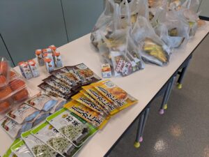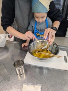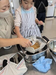 【R6.11.16(土)】親子料理教室 in アイーナ 2025-12-25 05:37 今回は郷土菓子の『雁月』を作りました! 参加者の方から「こんなに膨らむの?」「意外と簡単」「ケーキみたい」などの声がありました。 お酢を入れてどうなるか不安な方もいましたが、違和感はありませんでした。おまけに醤油団子も作りました。 ご寄付いただいたお菓子やおかずに加えて、我が家の柿もお渡しできました。