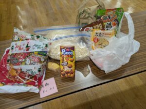 【R7.12.12(金)】まんまるひろばin善隣館 2026-01-31 11:26 今回のまんまるひろばは、お弁当の日でした。 今年ラストはクリスマスのようなお弁当にしました。44食分です。 新米、稲庭うどん、レトルト食品などに加えて、先日いわて生協さんから寄付いただいたお菓子などを子ども達にプレゼントしました。 ボランティアさんも会場提供も感謝、皆さまのお陰様で無事終了しました。