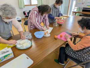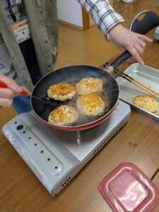 【R7.4.19(土)】介護予防教室in山田北浜AP 2026-02-01 09:53 今回から大沢APの方もこちらで一緒に開催です。 久しぶりだったので、近況報告に花が咲きまさした。(桜に負けじと満開) リクエストのハンバーグはヘルシーに豆腐入りにしました。 また、小松菜の辛子マヨ和えやトマトを添えました。 大沢の方と北浜の方が震災前はご近所だったと思いがけない再会にのエピソードがありました。