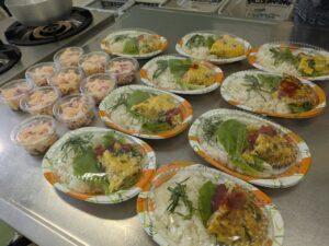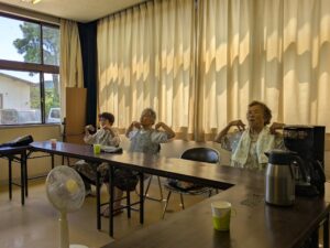 【R7.7.23(水)】介護予防教室in陸前高田下矢作 2026-02-02 16:31 暑すぎる日々に心配していましたが、なんと、研修室にエアコンが設置されていました。 脳トレも軽運動も爽やかにできました。 参加者の方が作った玉ねぎで炊き込みご飯を、じゃが芋でスパニッシュオムレツとしば漬け入サラダを作りました。